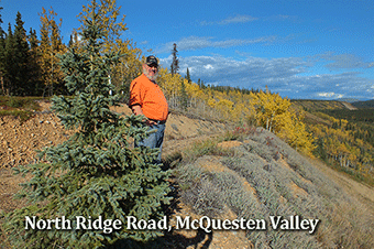 Test results have been consistent across all our McQuesten claims, averaging 0.4 grams per cubic meter (0.406 grams per yard), lighter at the top beneath the overburden, then quickly increasing as you dig down.